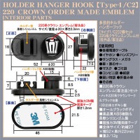 商品名 : 210/200マジェスタ/多目的ホルダーハンガーフック/220系クラウンマークエンブレム付/客注品/2個セット【タイプ1/C2】ケーブル マスク 各袋 収納 整理 便利グッズ