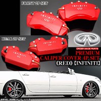 キャリパーカバー【V36スカイライン・タイプP/インフィニティステッカー付(客注品)】《レッド》フロント&リア[4点セット]オーダーメイド