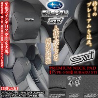 スバル純正STIメタル付《タイプ3/SB》プレミアムネックパッド【ブラック/2個セット】低反発ウレタン内蔵/本牛革製パンチングレザー/ブラガ
