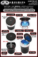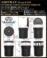 【インフィニティ純正エンブレム付】車用灰皿/LEDアッシュトレイ小型[タイプ2/IN]欧米仕様メッキ&ブラックボディ/水洗いOK/客注品/ブラガ