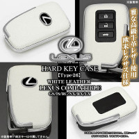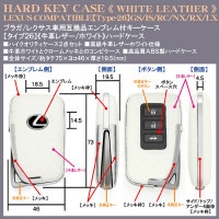 ブラガ/レクサス車用互換品キーケース[タイプ26/牛革ホワイト&メッキ/ハードケース]10系NX200t/300hスマートキー対応/客注エンブレム付