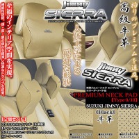スズキ新型ジムニーシエラ エンブレム付[タイプ3/J3]プレミアムネックパッド/ベージュ2個/低反発ウレタン/本牛革製パンチングレザー/客注品