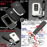 [30系IS250/350/300h]ブラガ/レクサス車用互換品キーケース[タイプ2L/WH]ホワイト牛革&メッキ/スマートキー対応/Lマークエンブレム付/牛革キーホルダー付/客注品