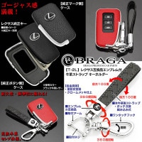 タイプ2L/RE【ブラガ/レクサス車用互換品/レッドレザー&クロームメッキ】スマートキー対応/欧米仕様Lマークエンブレム付ハードカバー キーケース&牛革ストラップ キーホルダーセット/客注品/レクサスパーツ【ブラガ/BRAGA】