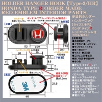 商品名 : ヴェゼル/バモス/CR-V[ホンダ タイプR]多目的ホルダーハンガーフック/レッドエンブレム付/客注品[タイプ3/HR]ケーブル マスク 鍵 各袋 収納 整理 便利グッズ