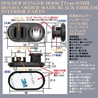 ステップワゴン/フィット[ホンダ]多目的ホルダーハンガーフック/ブラックエンブレム付/客注品【タイプ3/HB】ケーブル マスク 鍵 眼鏡 各袋 収納 整理 便利グッズ