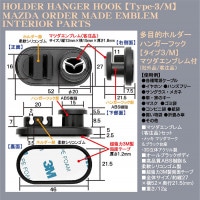 MAZDA 2/3/6/プレマシー/多目的ホルダーハンガーフック/マツダ マークエンブレム付/客注品【タイプ3/M】ケーブル マスク 鍵 眼鏡 各袋 収納 整理 便利グッズ
