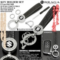 [タイプ5SZ/SB]スズキ車互換品 エンブレム付 客注品 キーホルダー シルバーメッキ/ブラック 合皮ストラップ ラインストーン/BG BRAGA