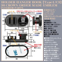商品名 : クロスオーバー/セダン/30系クラウン 王冠&ロゴ エンブレム付/客注品[タイプ1/C3]多目的 ホルダー ハンガー フック/ケ収納 整理 パーツ
